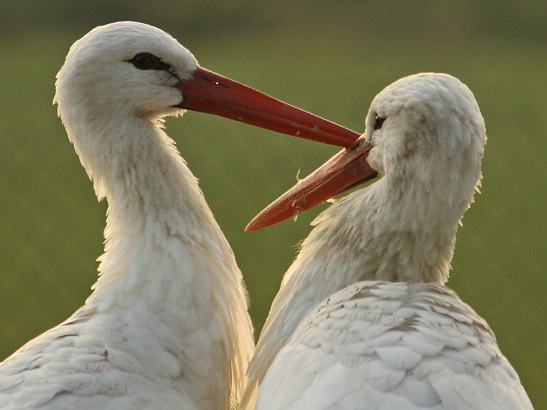 Seit einigen Jahren haben sich Störche auf unserem Hof niedergelassen und Nester gebaut. Im Frühjahr kommen sie und brühten auf der Scheune, im Birnenbaum und in der Eiche. Es sind immer die selben Störche die zurückkommen und zwei oder auch drei Jungstörche aufziehen. Sie brühten ab März/April, legen drei bis fünf Eier. Aufgrund der vielen Wiesen an der Aa und des Naturschutzgebietes (Ausgleichsfläche der Stadt Münster) finden sie reichlich Nahrung.